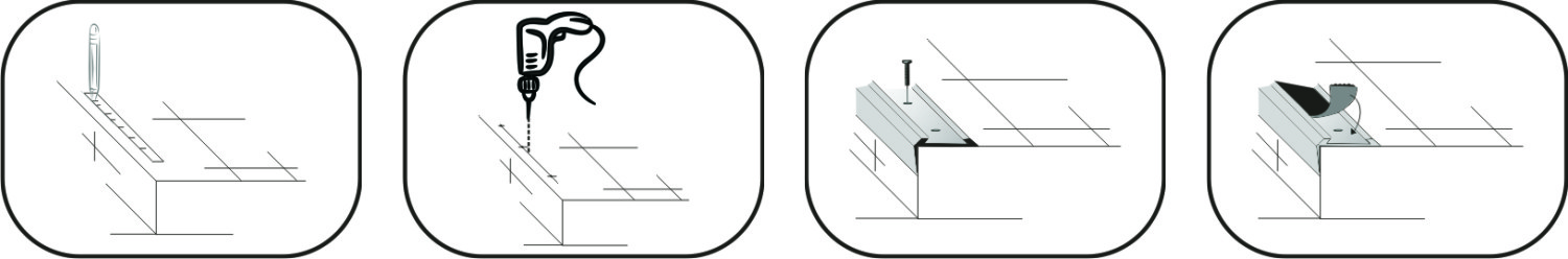 1. Просверлите отверстия в предполагаемом месте установки порожка.