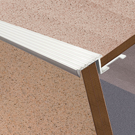 Цветовая гамма: Тех. характеристики Z-профиль с трапециевидной пробивкой предназначен для защиты и декорации внешних стыков ступеней лестниц, подиумов и других внешних углов, облицованных керамической плиткой |